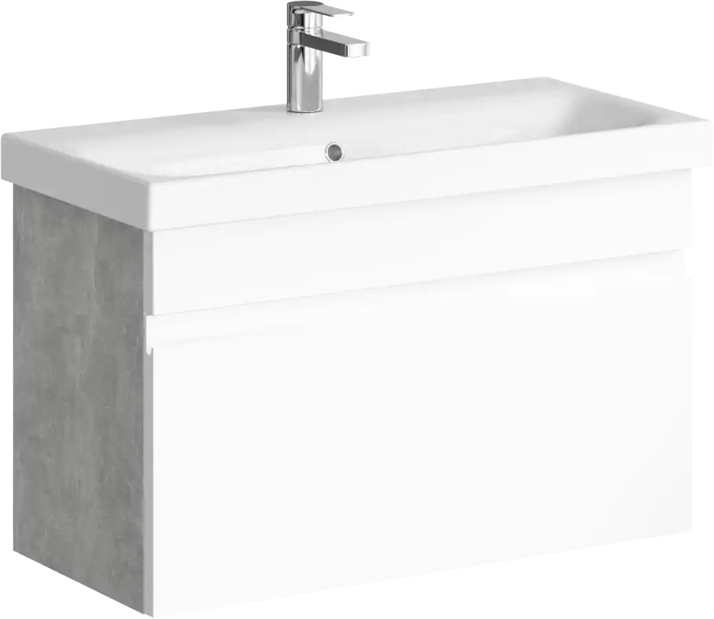 Подвесная тумба Aqwella Smart SRT0108BS с одним ящиком, цвет бетон светлый с умывальником MODUO SLIM 80