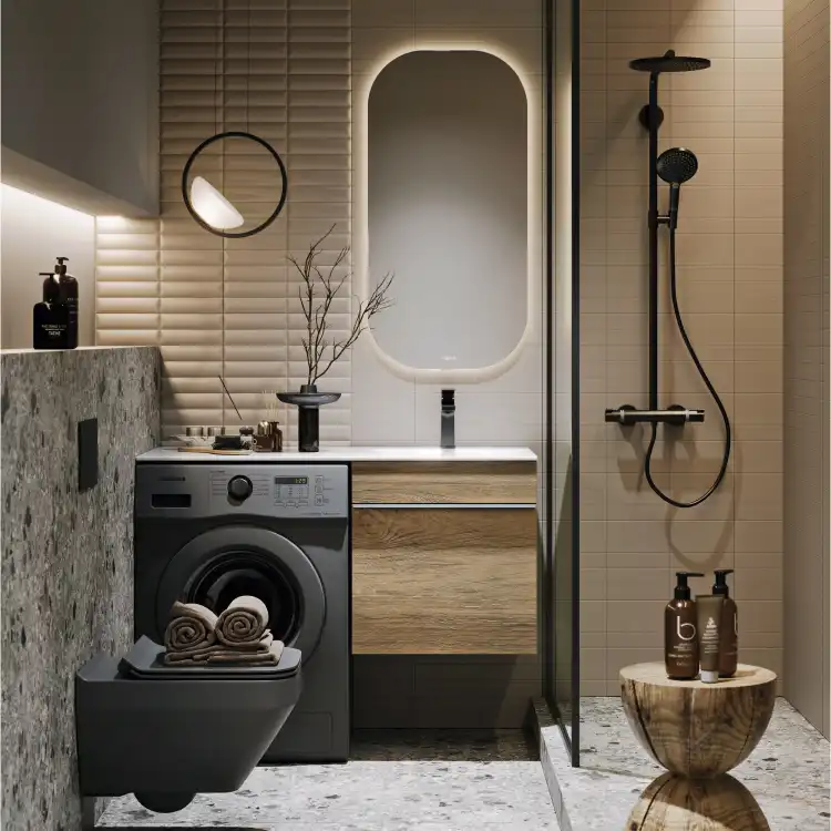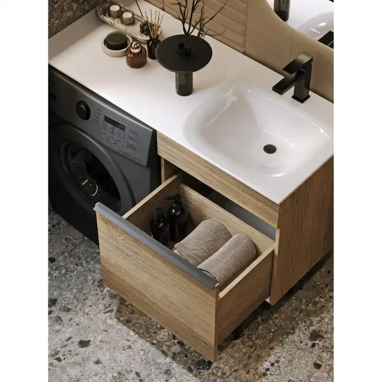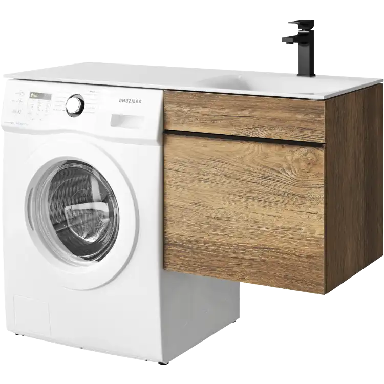 Подвесная тумба Aqwella Terra TER01051DBR под стиральную машину с одним ящиком 115 см, цвет дуб балтийский с умывальником Forma 115 правая