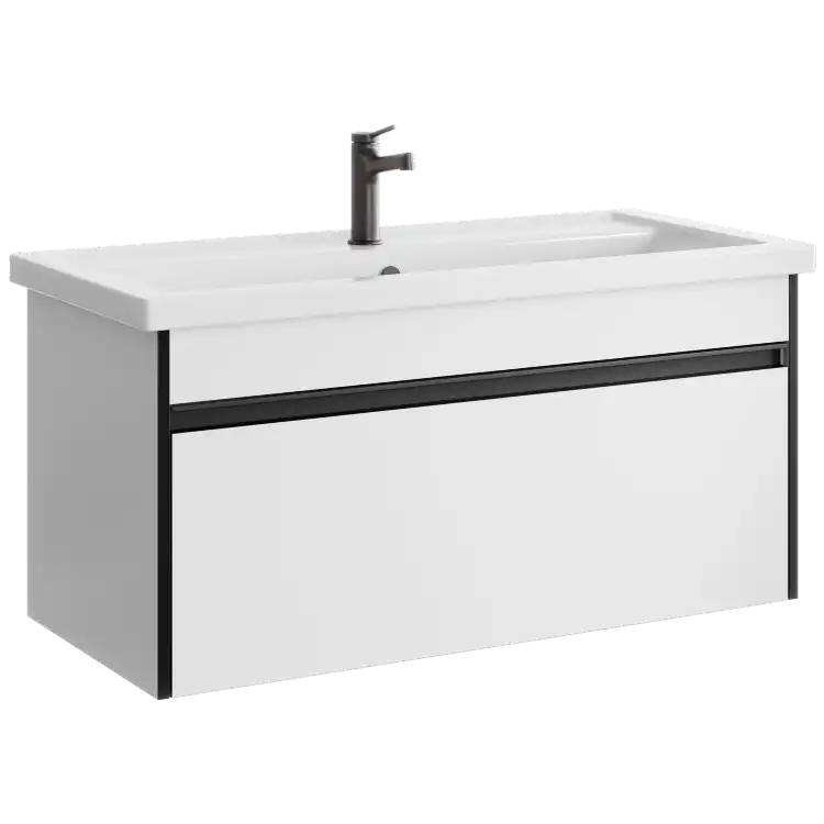 Подвесная тумба Aqwella Urban URB0110W 100 см с одним ящиком в белом цвете, с умывальником Фостер 1000