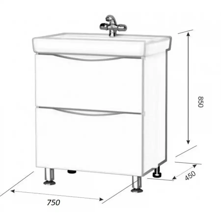 Тумба с умывальником AURA ПАЛЕРМО 80-2 напольная.