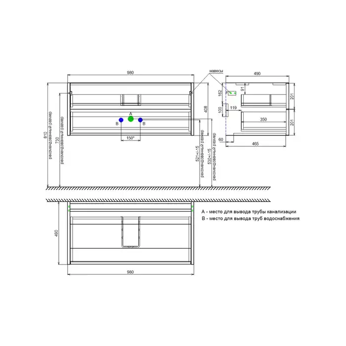 • Вместительные ящики с внутренней отделкой в практичном графитовом цвете – стильный внешний вид и много места для хранения. Эргономичная пластиковая защита сифона.