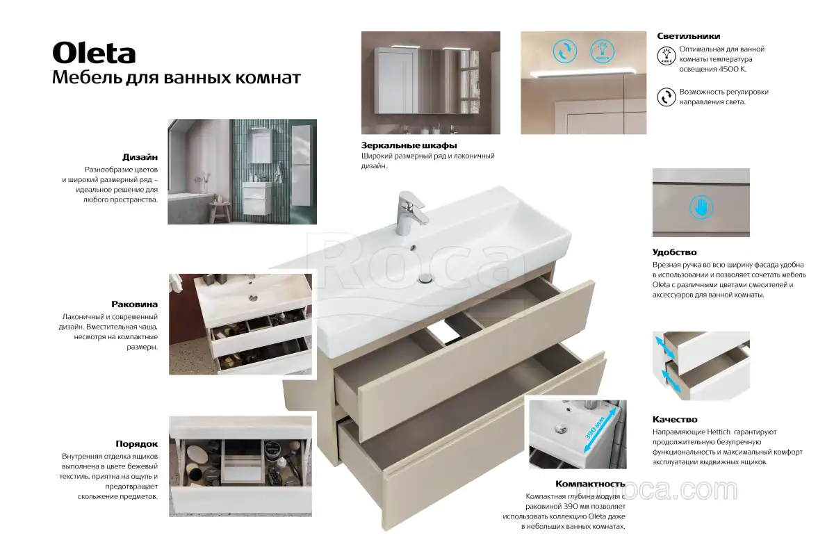 Тумбы под раковину Roca Oleta 80 A857640515 подвесная, цвет, Капучино