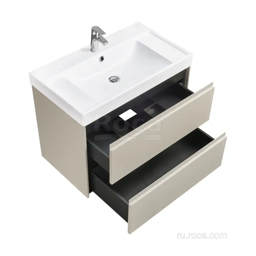Тумбы под раковину Roca Ona 80 A857630510 подвесная, 2 ящика, цвет, Бежево-серый матовый