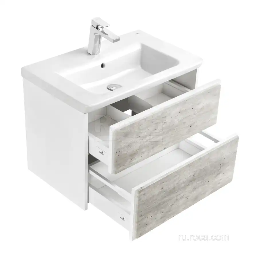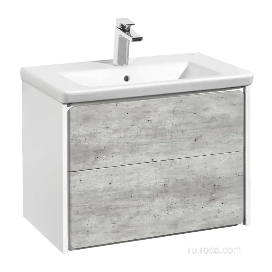 Тумбы под раковину Roca Ronda 70 ZRU9303003 подвесная, цвет, Белый матовый / Бетон в современном стиле от испанского бренда Roca, выполненная из высококачественной МДФ, с ящиками полного выдвижения с системой push-to-open.