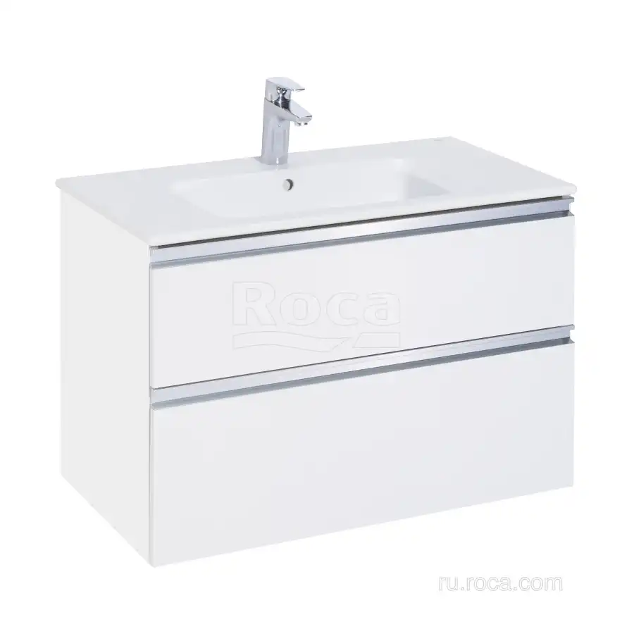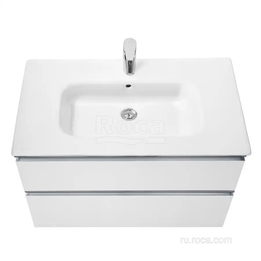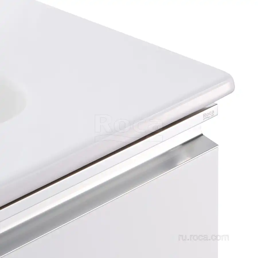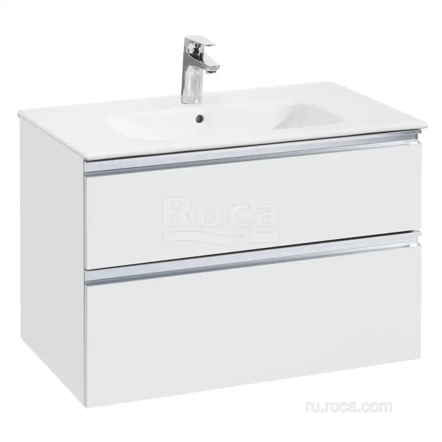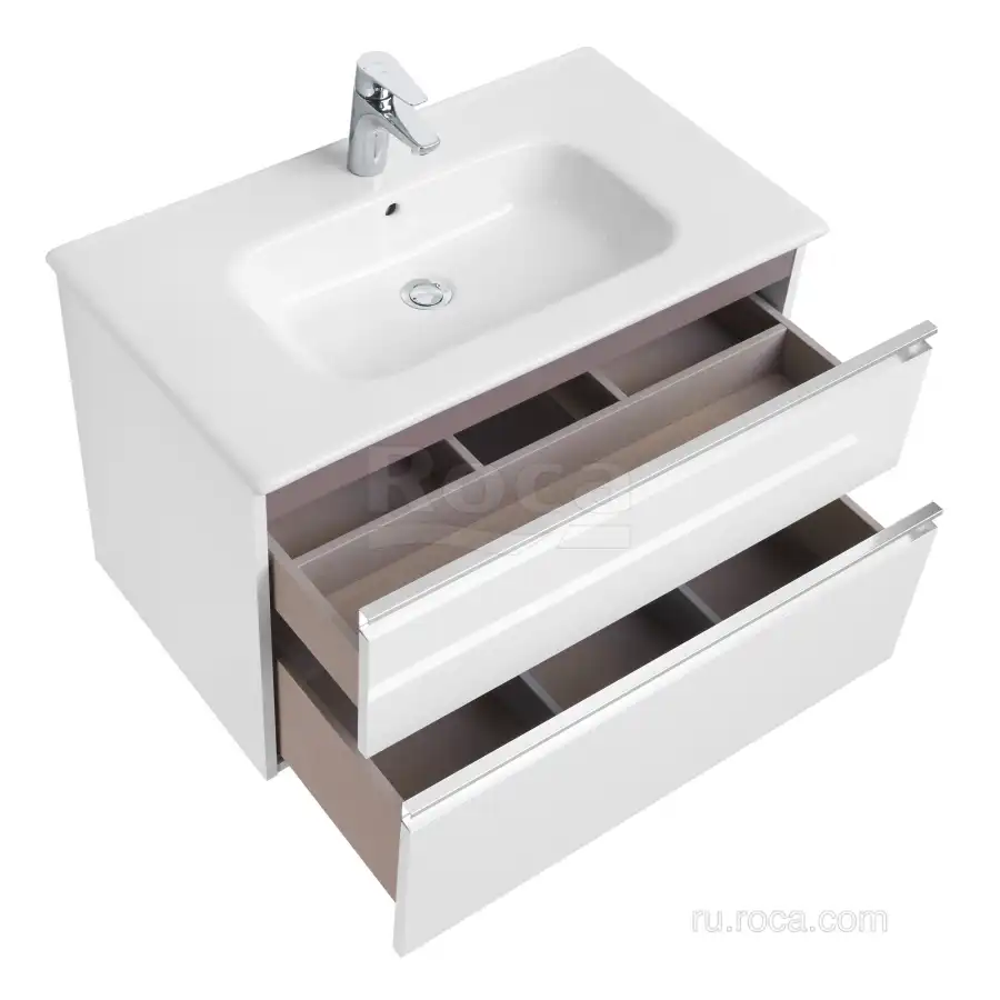 Тумбы под раковину Roca The Gap 80 A857399806 подвесная, 2 ящика в цвете белый глянец обладает универсальным современным дизайном и функциональностью. Металлическая ручка во всю ширину модуля удобна в использовании и вместе с направляющими с функцией soft-close делает процесс открывания ящиков легким и приятным. Нижняя часть ручки обработана под углом, что предотвращает скопление воды и пыли. Ручка защищает фасады модуля от попадания капель воды с раковины, а также защищает углы модуля от ударов и износа. Внутренняя отделка ящиков выполнена в цвете бежевый текстиль, приятна на ощупь и предотвращает скольжение предметов. Пространство верхнего ящика разделено на три части, что позволяет хранить предметы для ванной комнаты в идеальном порядке. Благодаря универсальному дизайну модули под раковину THE GAP могут сочетаться с различными вариантами зеркал и зеркальных шкафов из коллекций THE GAP ORIGINAL, ANETO, VICTORIA NORD. Сифон для раковины приобретается отдельно. Новый артикул, аналог 857551806