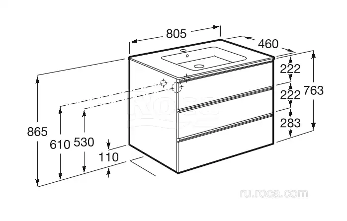 Тумбы под раковину Roca The Gap 80 A857406806 подвесная, 3 ящика, цвет, Белый глянец
