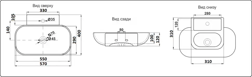 Умывальник CeramaLux 9234 570х400х120 цвет Белый