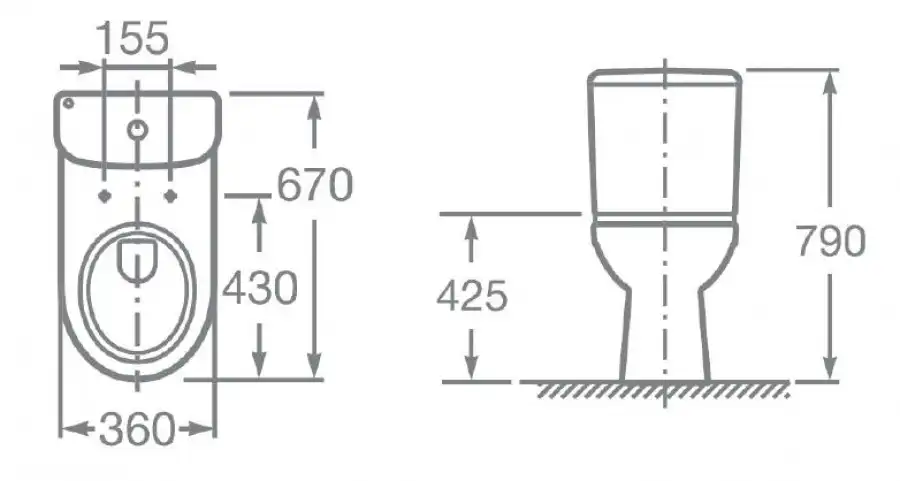 ROCA | ACCESS унитаз-компакт напольный 360x670x790 мм, c сиденьем, с косым выпуском, белый
