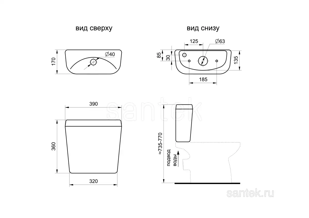 Унитаз-компакт Santek Анимо с горизонтальным выпуском, эконом- 1 реж., полипропилен, 1WH110035
