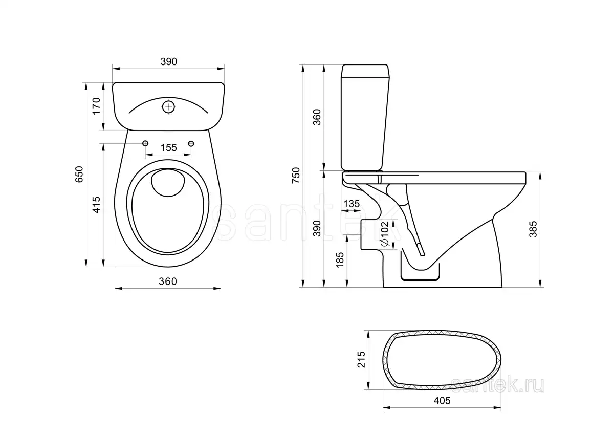 Унитаз-компакт Santek Анимо с горизонтальным выпуском, стандарт- 2 реж., дюропласт, 1WH302132