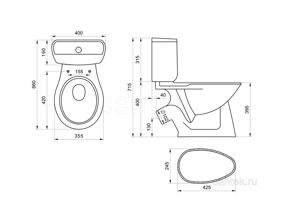 Унитаз-компакт Santek Бриз с диагональным выпуском, стандарт- 2 реж., дюропласт, 1WH302138