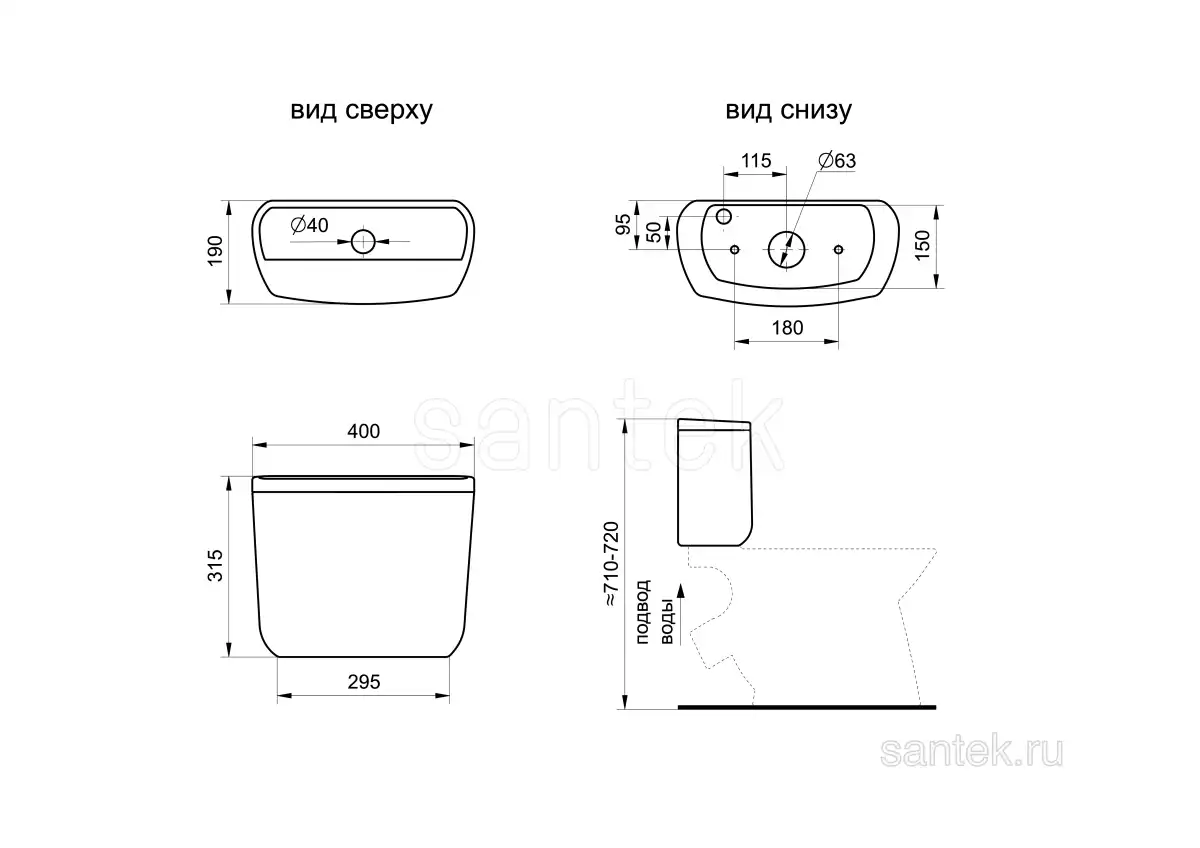 Подвод водыСнизу бачка