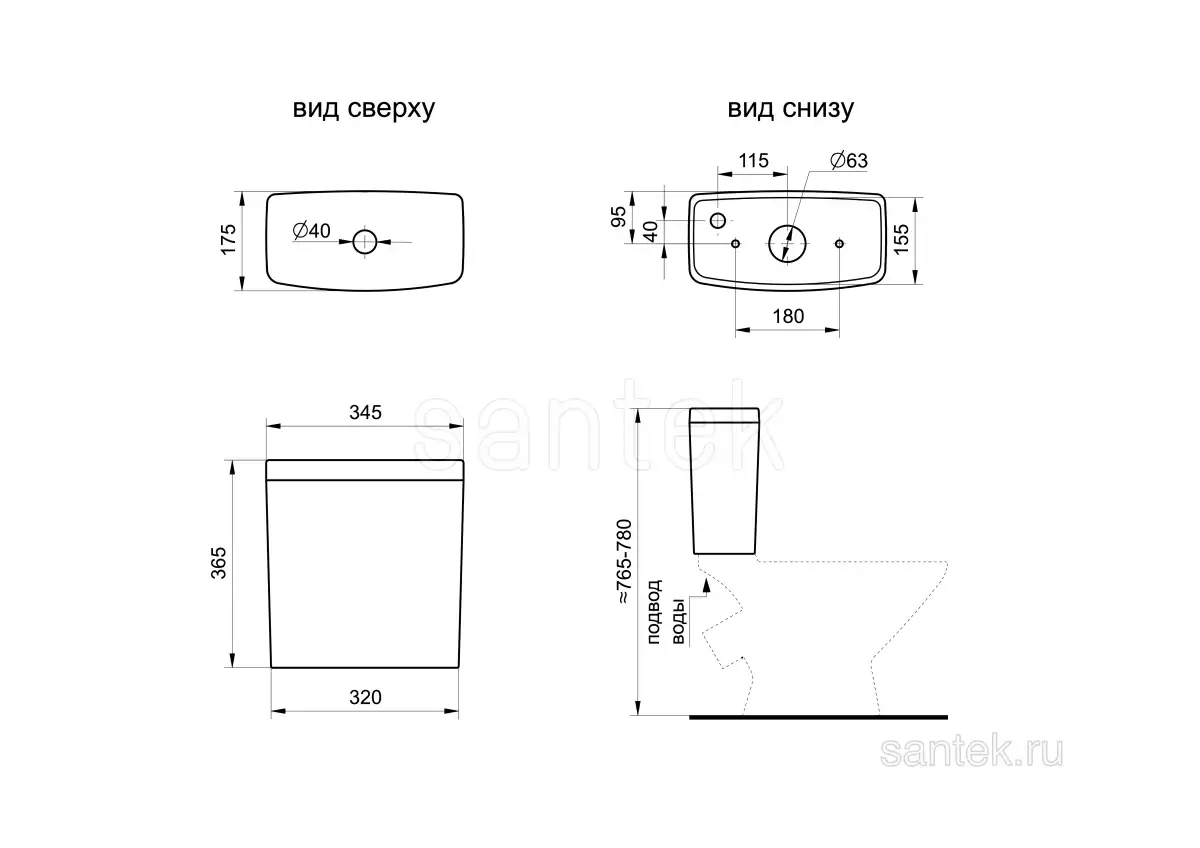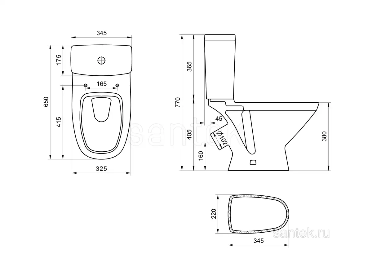 Унитаз-компакт Santek Лига с диагональным выпуском, эконом- 2 реж., полипропилен, 1WH302197