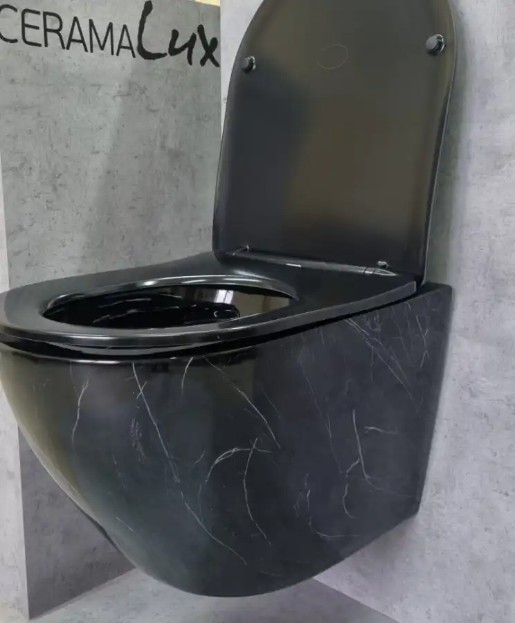 Унитаз подвесной Ceramalux 2212BM с сиденьем микролифт Черный мрамор