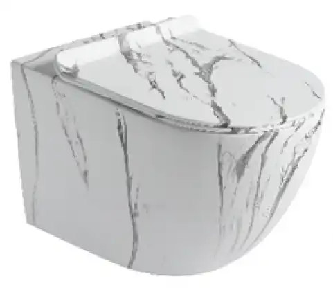Унитаз подвесной Ceramalux 2213-K с сиденьем микролифт Белый мрамор