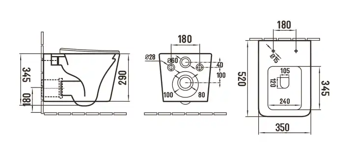 Унитаз подвесной Ceramalux 5170MDH, безободковый с сиденьем микролифт Серый матовый