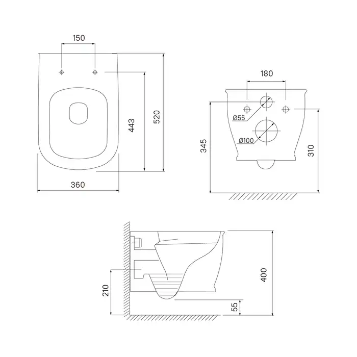 • Безободковое строение чаши позволяет обеспечить ее полный омыв – для эффективного смыва, гигиеничности, избавления от неприятных запахов. Т