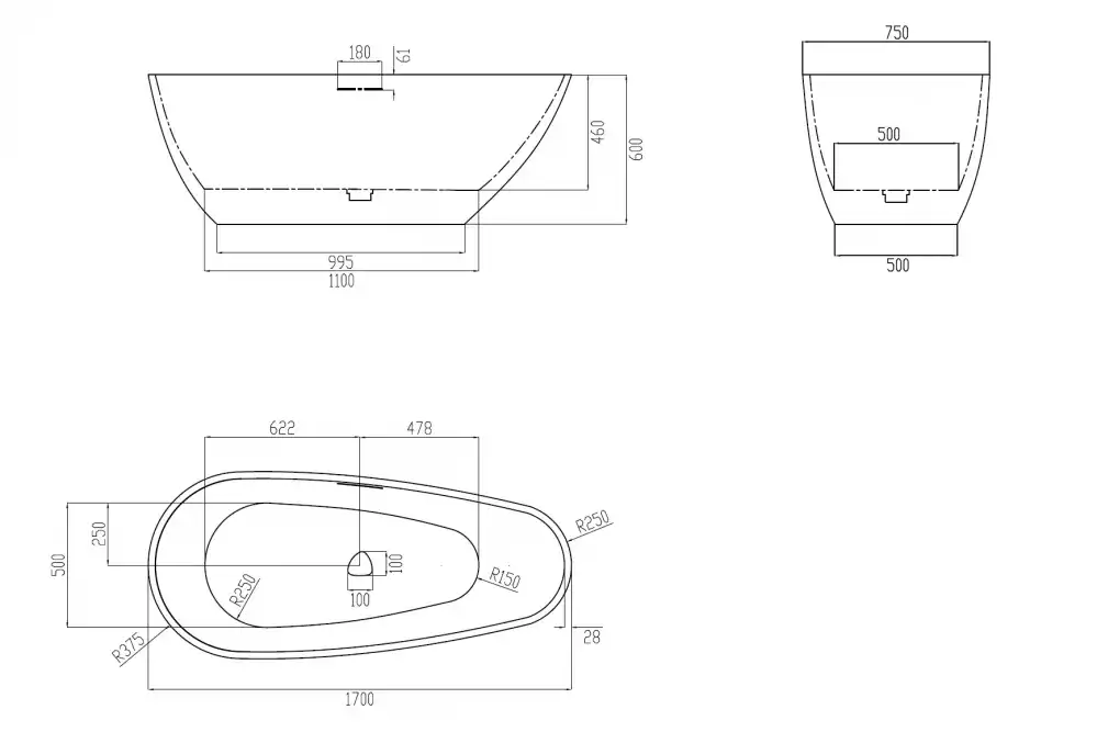Ванна из искусственного камня ABBER Dortmund AM9911G 170х75 серая матовая