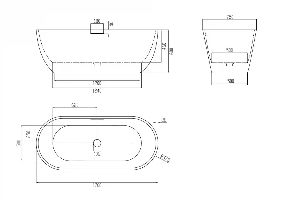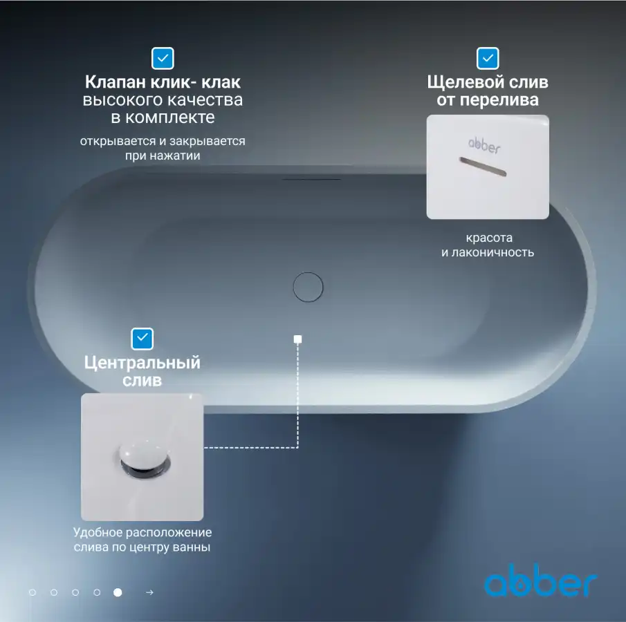 Ванна из искусственного камня ABBER Frankfurt AM9941 170х75 белая матовая