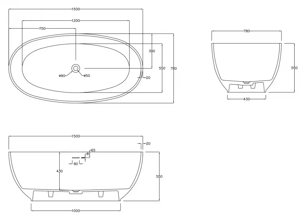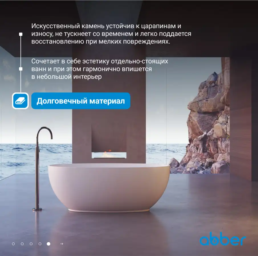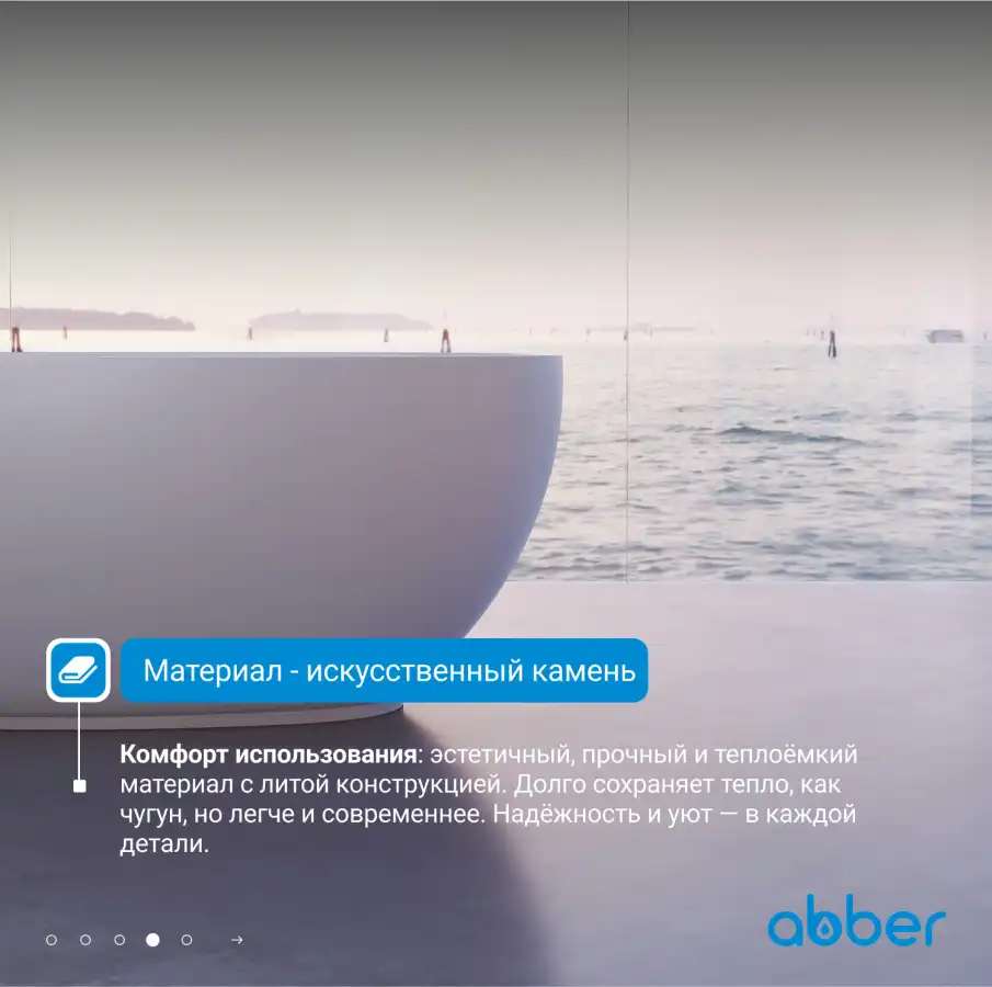 Ванна Abber Stein 150х80 AS9641-1.5 из искусственного камня, Белая матовая. Бесплатная доставка в Краснодаре.