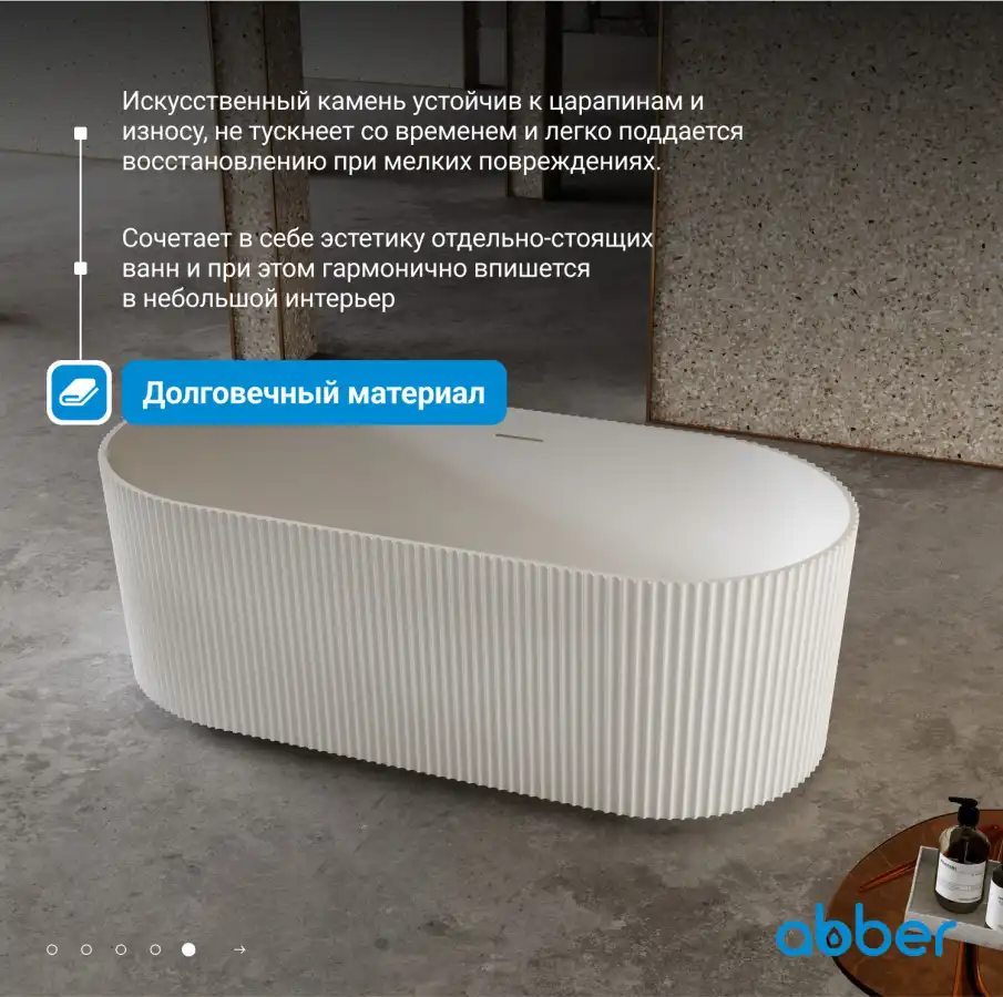 Ванна Abber Stein 170х75 AS9601 из искусственного камня, Белая матовая