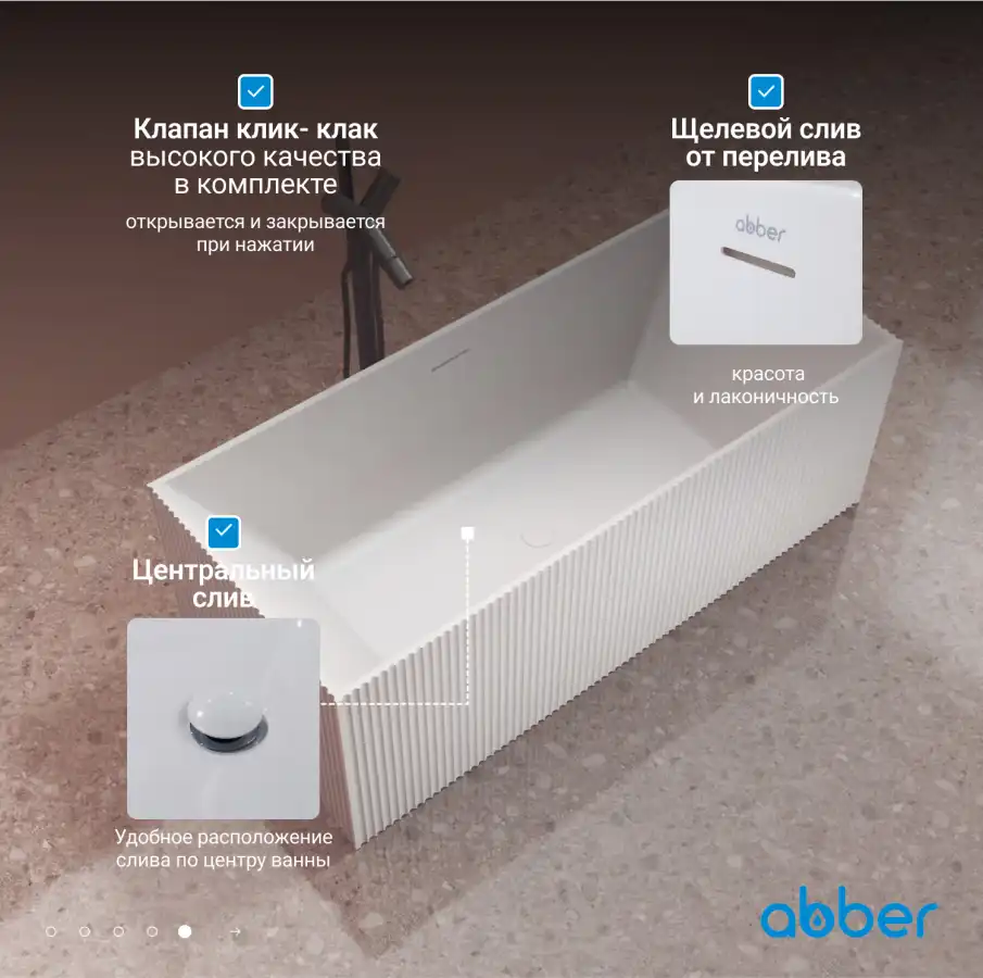 Ванна Abber Stein 170х75 AS9602 из искусственного камня, Белая матовая