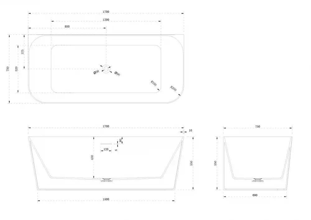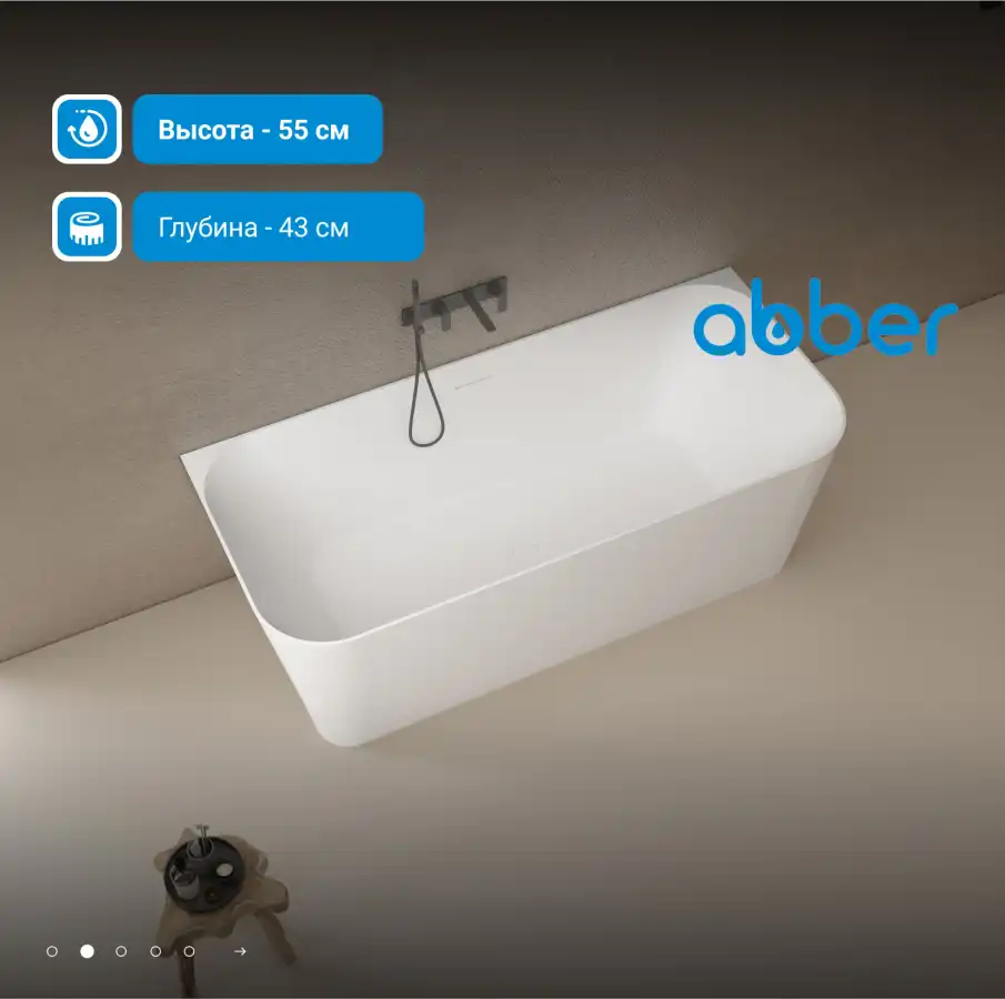 Ванна Abber Stein 170х75 AS9617 из искусственного камня, Белая матовая