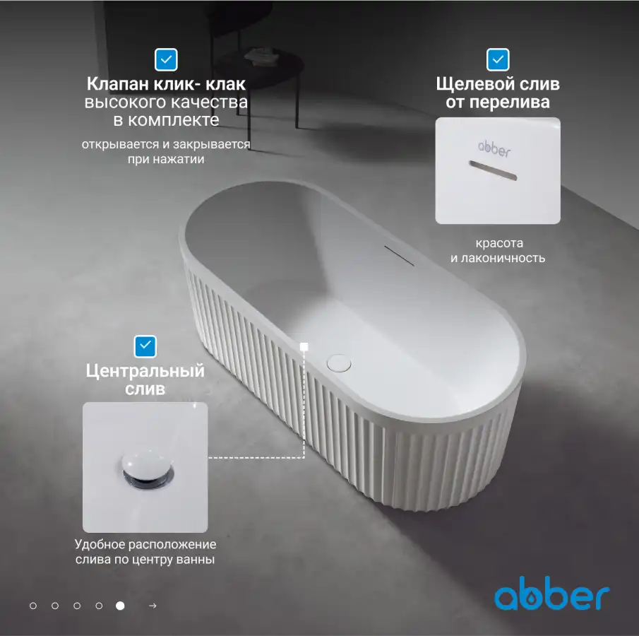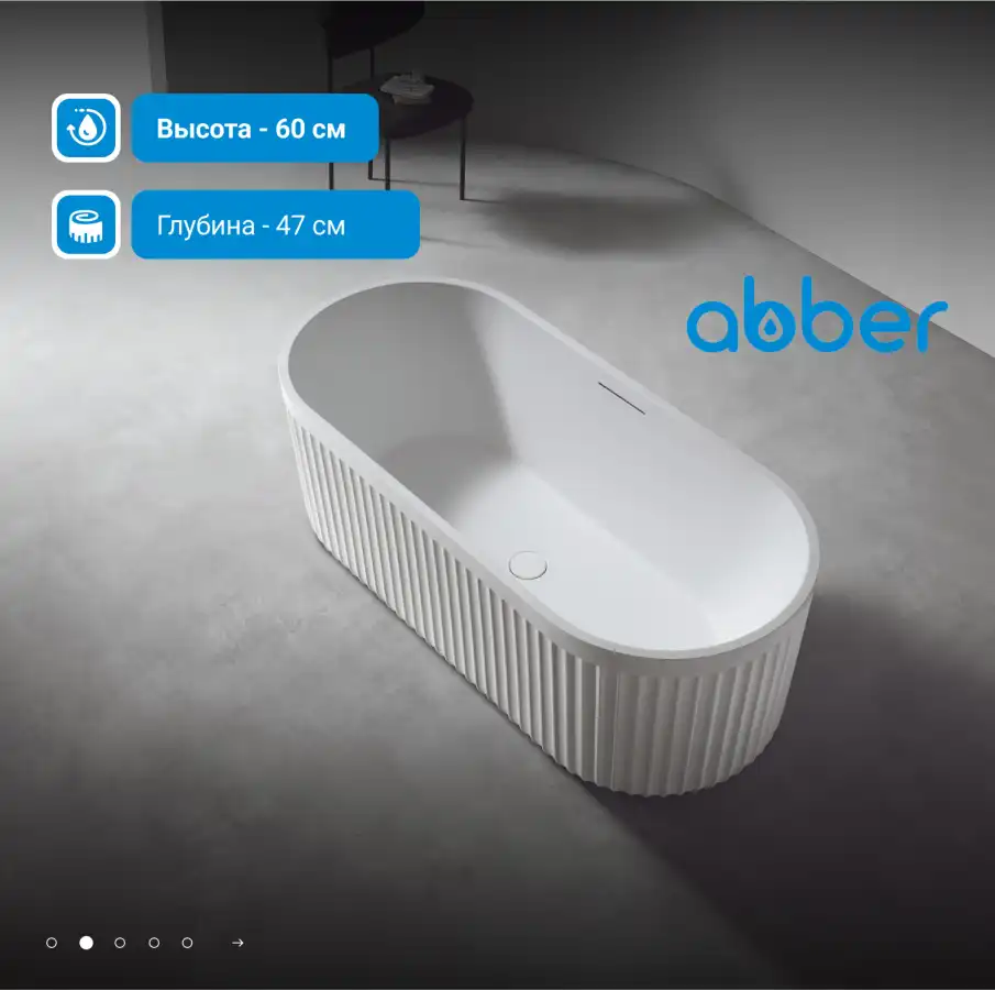Ванна из искусственного камня ABBER Stuttgart 170х75 AM9925 белая матовая