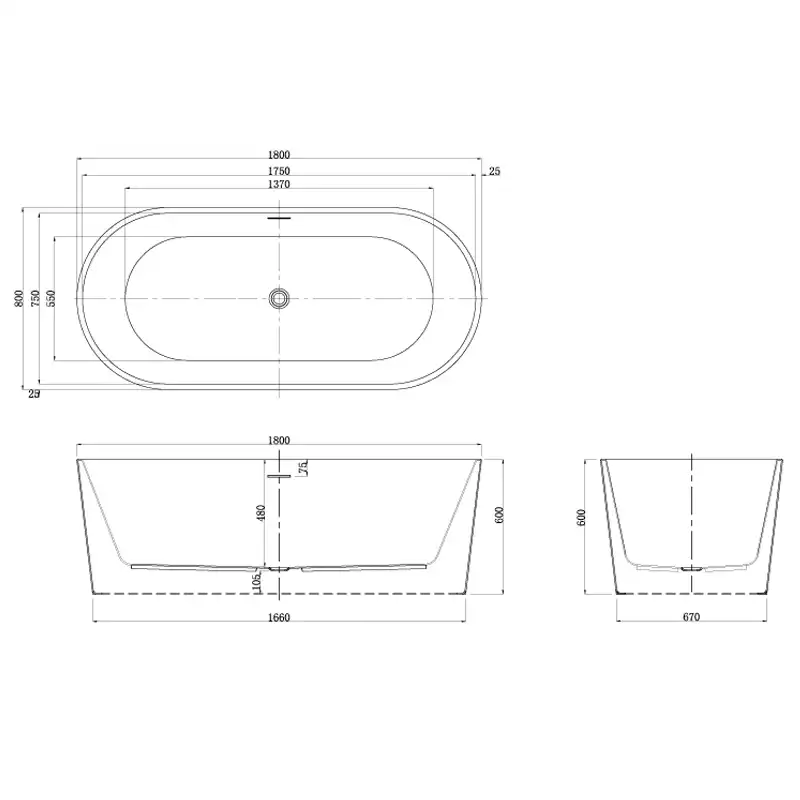 Ванна акриловая Azario BRISTOL 180х80 BRI18080, свободностоящая, в комплекте с сифоном и металлической рамой