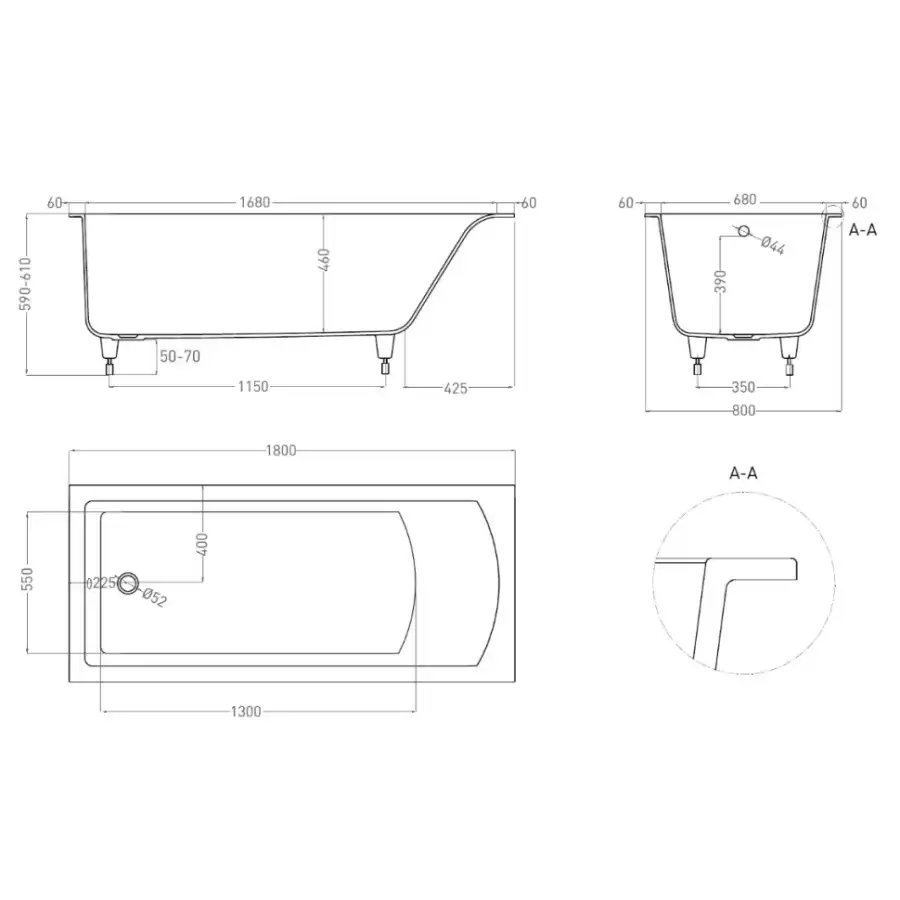 Ванна Salini CASCATA 180х80 104223M из материала S-Stone, Белая матовая