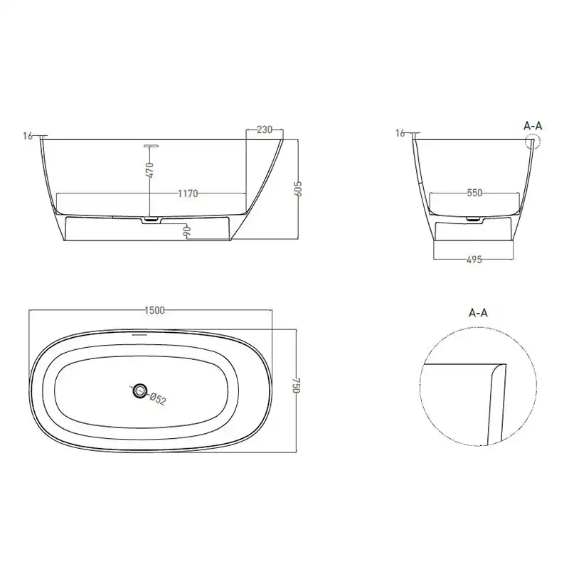 Ванна из искусственного камня S-Sense Salini NOEMI 170x75 101712G Белая глянцевая