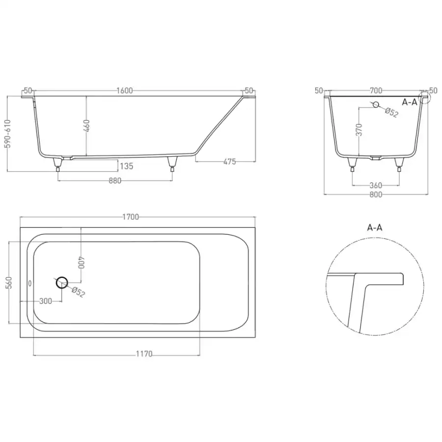 Ванна Salini ORLANDA 170х80 102026M из материала S-Stone, Белая матовая