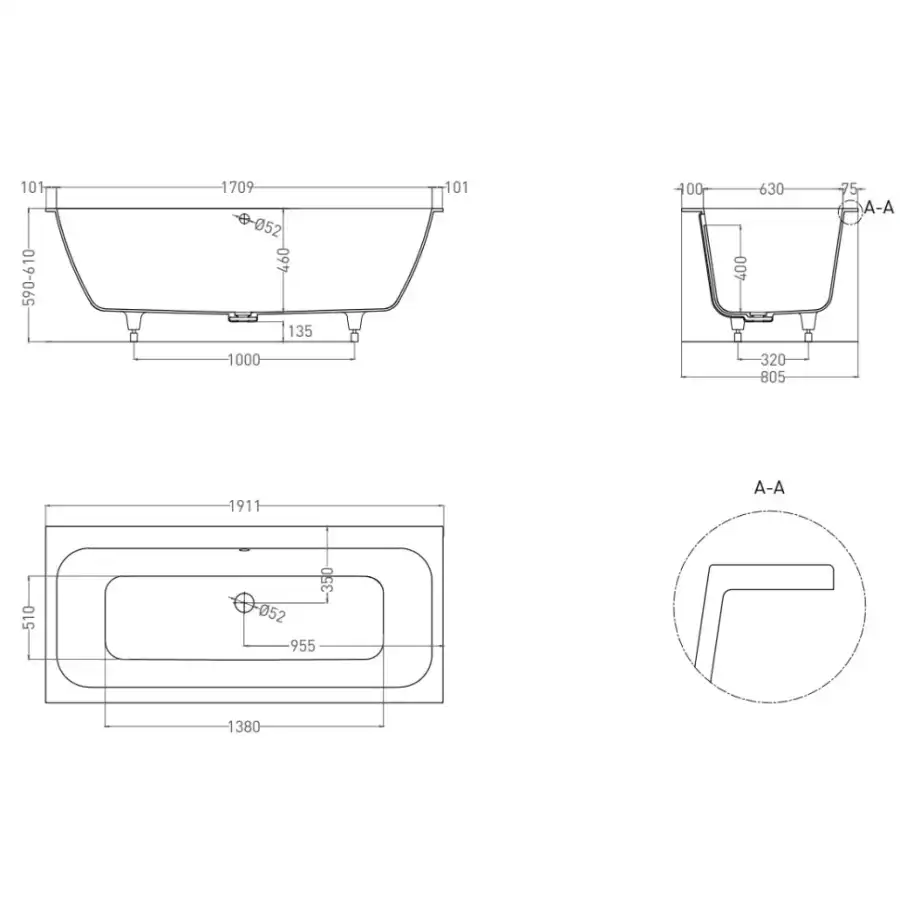 Ванна Salini ORLANDA AXIS 190х80 103221M из материала S-Stone, Белая матовая
