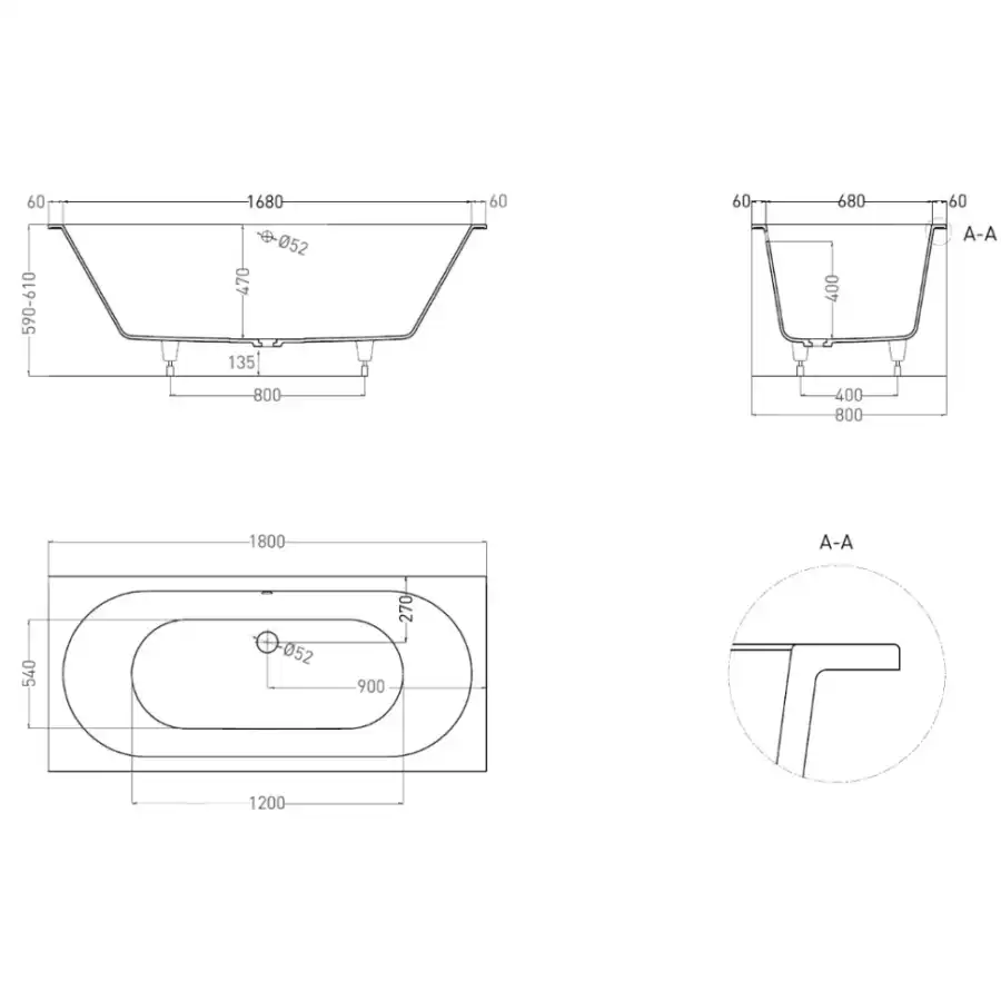 Ванна Salini ORNELLA AXIS 180х80 103411G из материала S-Sense, Белая глянцевая
