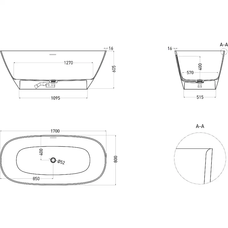 Ванна из искусственного камня S-Sense Salini SOFIA 165x75 102511G Белая глянцевая