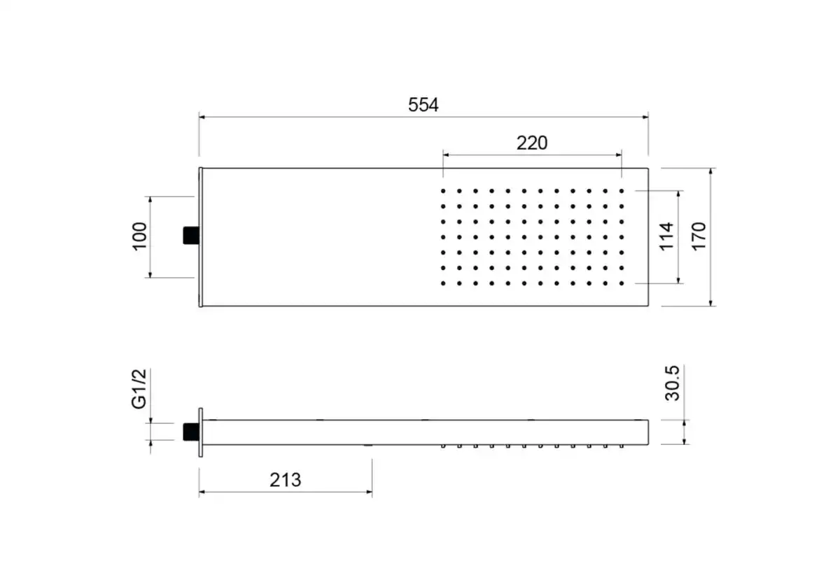 Размер верхнего душа (см)55х20