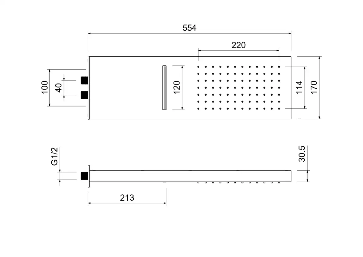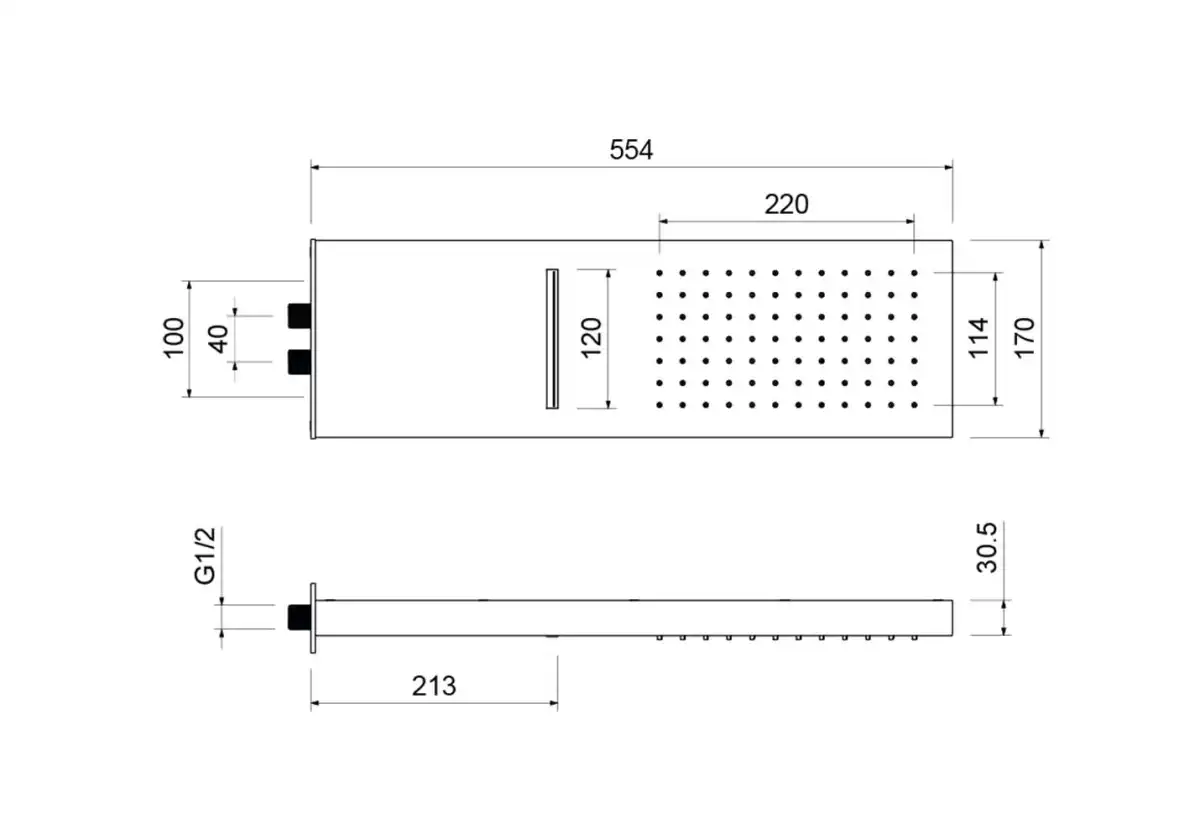 Настенный верхний душ 2 jet 550*170*30 мм AQUATEK AQ2085CR, хром.