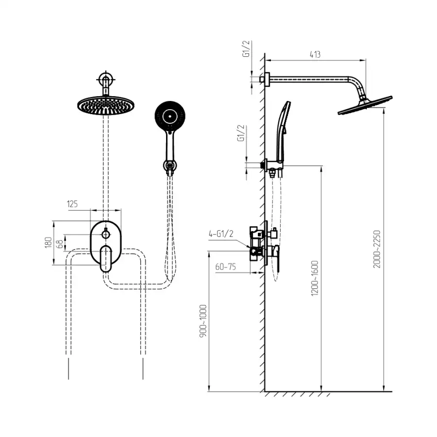Размер верхнего душа (см)D25