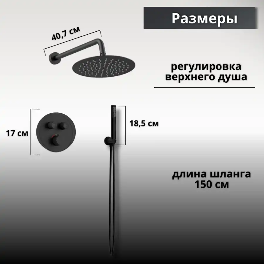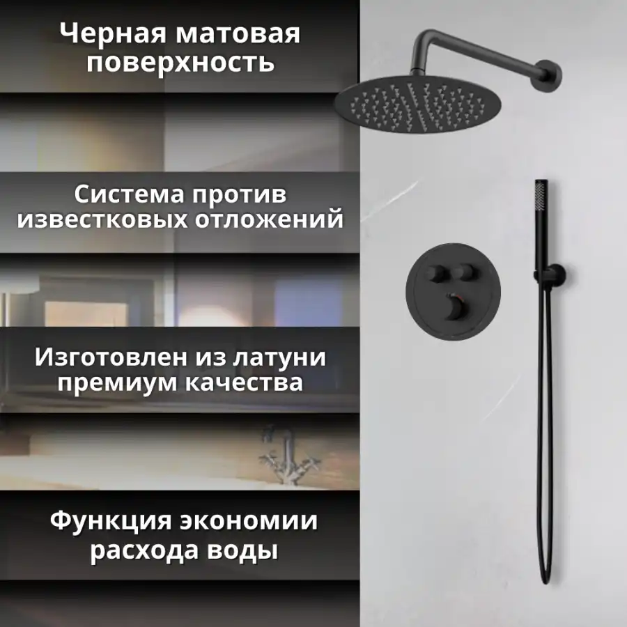 Встраиваемая душевая система AVS LUXURY 811-501-MB термостат, черный матовый.