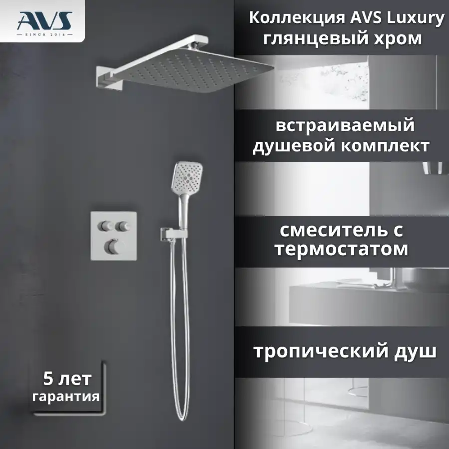 Встраиваемая душевая система AVS LUXURY 811-502-CR термостат, хром