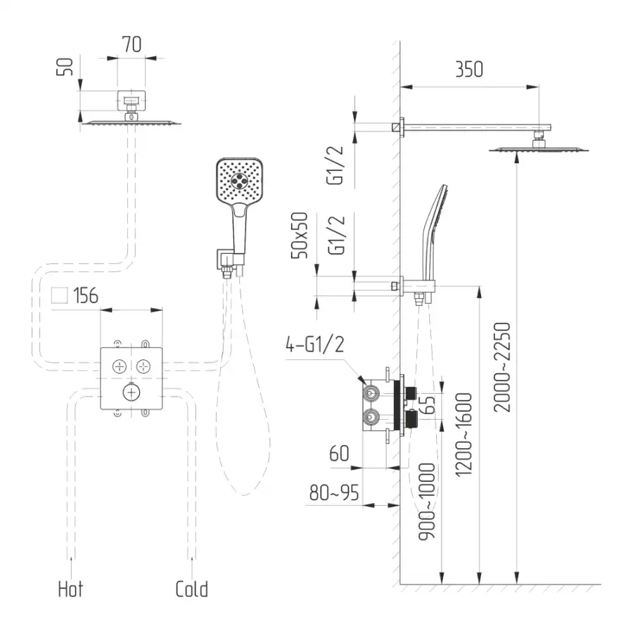 Встраиваемая душевая система AVS LUXURY 811-502-GM термостат, оружейная сталь
