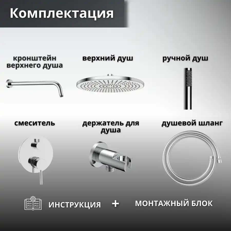 - Тропический душ со смесителем включает в себя все необходимые элементы для подключения, такие как монтажный блок , держатель лейки, верхний душ и шланг.Душевой комплект встраиваемый SLIMMER оснащена смесителем, который позволяет точно контролировать температуру воды, обеспечивая максимальный комфорт во время душа. Это особенно важно для семей с детьми, так как вы можете быть уверены в безопасности каждого водного процесса.