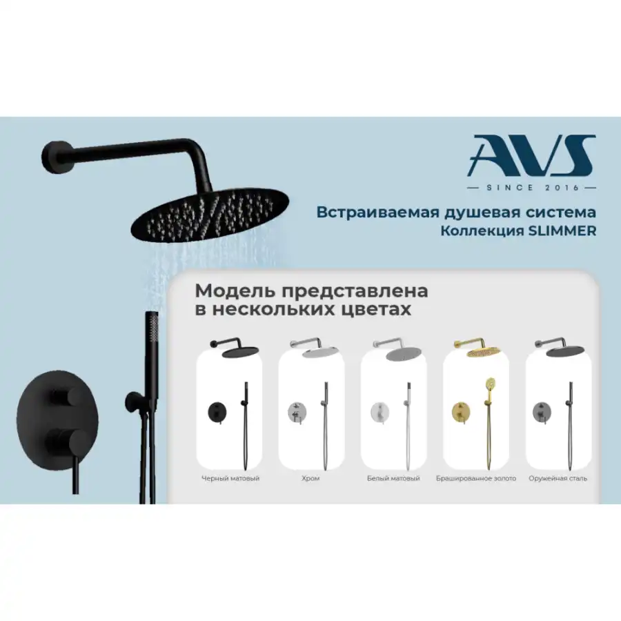 - Представляем вам уникальную душевую систему скрытого монтажа с изливом AVS SLIMMER, которая станет идеальным решением для вашей ванной комнаты. Этот встраиваемый душевой комплект сочетает в себе современный дизайн и высокую функциональность, позволяя вам наслаждаться комфортом и удобством во время принятия душа.