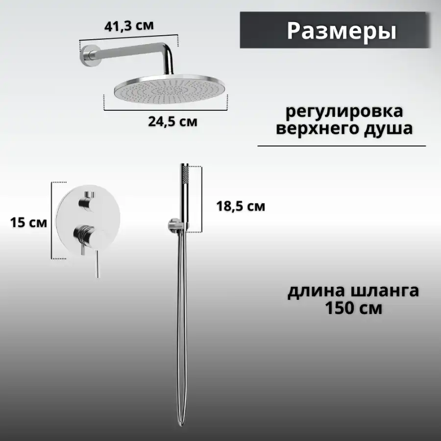 - Встраиваемая система обеспечивает легкость в уходе, так как на ней не скапливается лишняя пыль и грязь.Тропический душ с верхней лейкой создает эффект дождя, что делает каждый прием душа настоящим ритуалом расслабления. Вы можете наслаждаться мощным потоком воды, регулируя его по своему усмотрению.