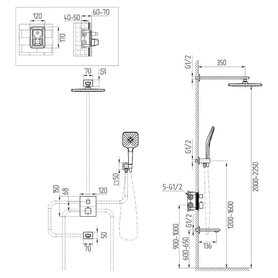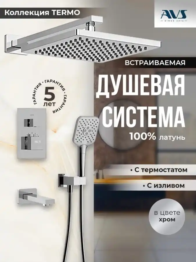 Встраиваемая душевая система AVS TERMO 811-504-CR термостат, с изливом хром