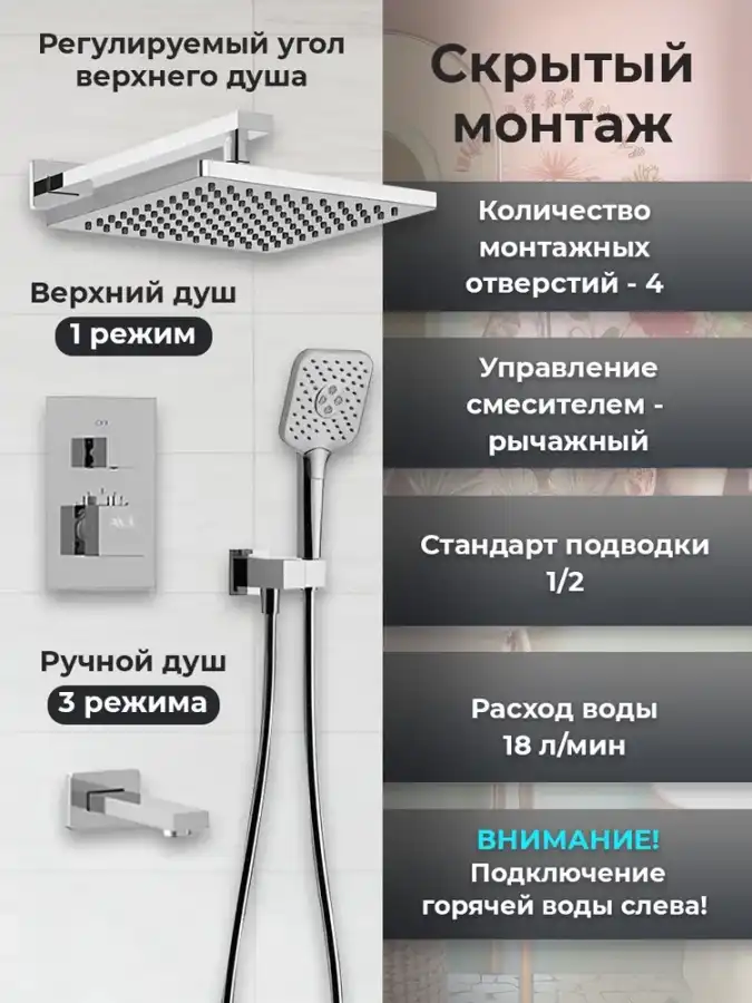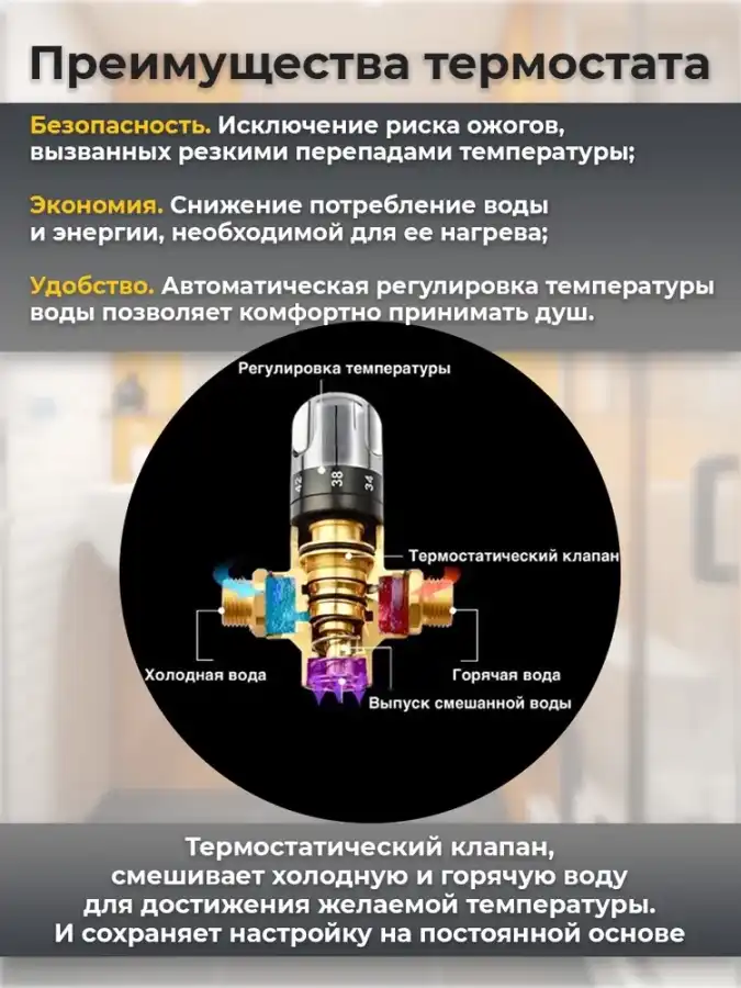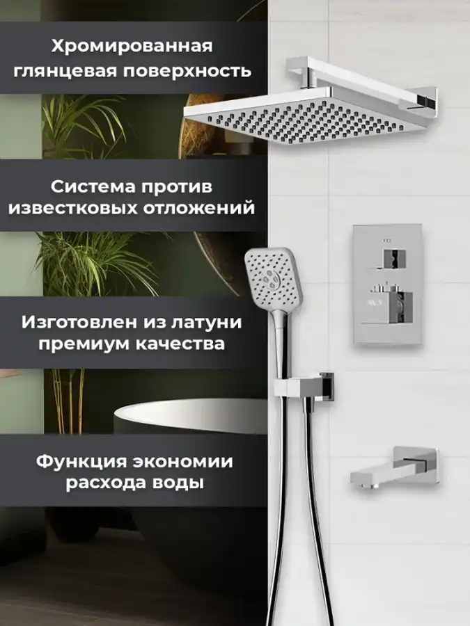 Встраиваемый душевой комплект AVS Termo - это идеальное решение для тех, кто хочет создать современную и функциональную ванную комнату. Этот комплект состоит из трёх режимов струй, что позволяет вам выбирать между мягкими, средними и сильными потоками воды. Кроме того, он оснащен термостатом, который обеспечивает точное регулирование температуры воды. Душевой комплект AVS Termo имеет стильный дизайн и выполнен из латуни, что делает его долговечным и надежным. Он также обладает защитой от скручивания и ограничителем температуры, которые обеспечивают безопасность использования.