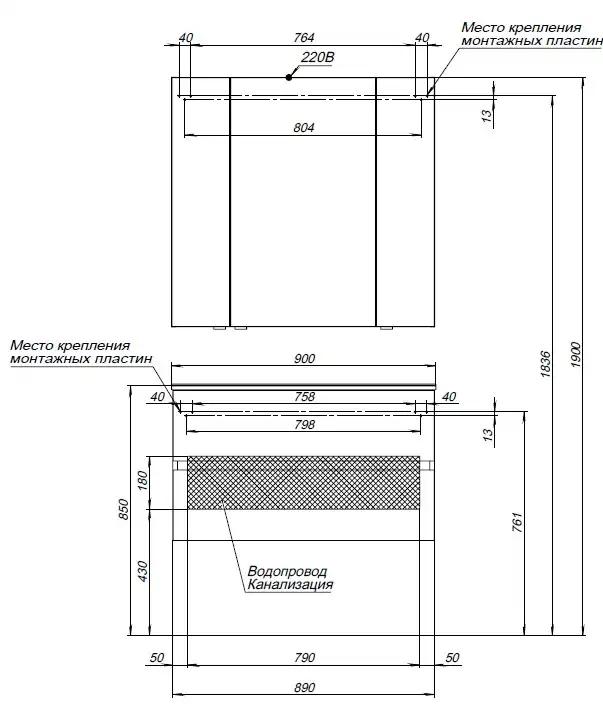 Ширина мебели (см)90