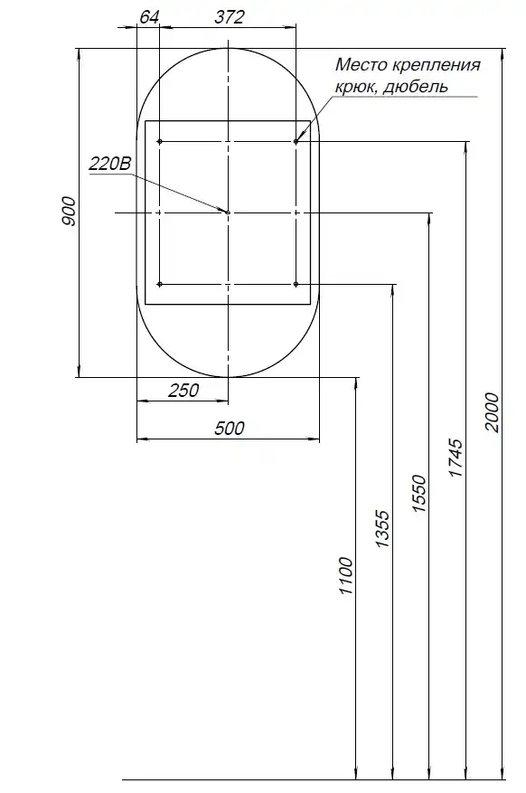 Фасад: утолщенное 4-мм зеркало с полированной кромкой