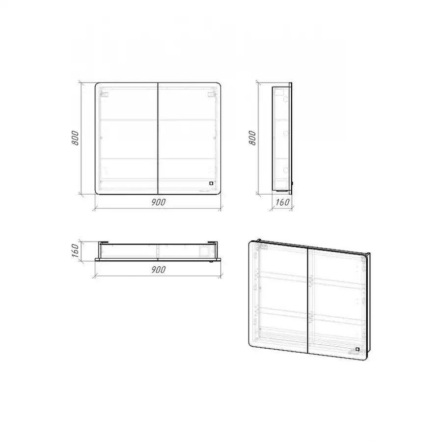 Зеркальный шкаф Grossman "АДЕЛЬ-90 см" правое с LED подсветкой, 209004.
