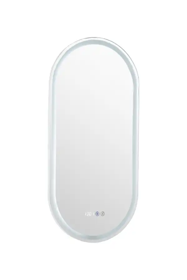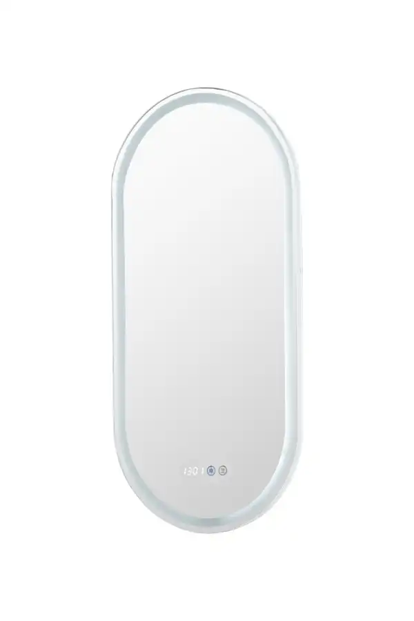 Зеркало Aquanet Монте 45х90 288969 с подсветкой, сенсорный выключатель с функцией диммера, с подогревом, с цифровым термометром и часами в овальном корпусе белого матового цвета идеально подойдет для интерьеров скандинавском стиле, модерн или хай-тек.